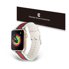 디씨네트워크 애플워치3/4/5/6/7/ SE 나토 가죽밴드 (38/40/41mm 호환 가능), 화이트, 1개