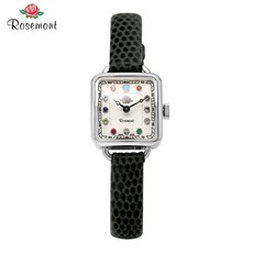[로즈몽 ROSEMONT] RS#53-03GY 하이브리드 티 로즈 탄생석 사각 쿼츠 여성 가죽시계 18mm