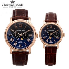 크리스챤모드 커플 남자 손목 아날로그 문페이즈 시계 CM401RGBCH-M 가죽시계 남녀 1택