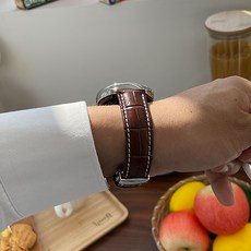 소가죽 남녀공용 시계끈 갤럭시 스마트워치 스트랩 20/22mm 애플워치 38/40/42/44 사이즈 호환가능, 20mm, 브라운/브라운스티치