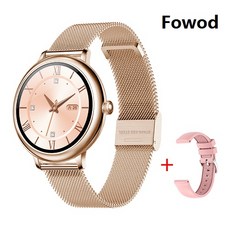 Fowod 여성 스마트워치 한글버전 + 1 실리콘 밴드, 금색 + 핑크색 시계줄