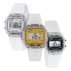 큐앤큐 투명시계 레트로 전자 유니크 우레탄 투명손목시계