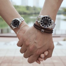 OST 오에스티 심플 실버 커플 메쉬 시계