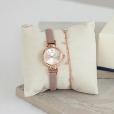 헤지스주얼리 단독판매 헤지스 가죽 시계+샤인 두줄 실버 팔찌 세트