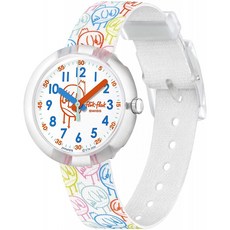 Flik Flak Kids’ Standard(R25 Power TIME 5+) 바이오 소싱 플라스틱 쿼츠 재활용 애완동물 스트랩 화이트 14 캐주얼 워치(