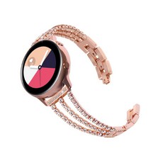 윰 갤럭시 액티브 1/2/워치3/워치4/워치4클래식 큐빅 삼선라인 20mm 메탈 스트랩, 로즈골드, 1개