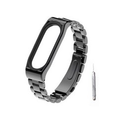뽀마 미밴드3 & 4용 클래식 메탈 스트랩 + 시계줄 조절기, 블랙