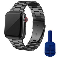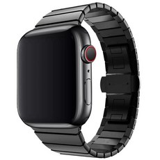 디지지 애플워치3/4/5/6/SE 솔리드 메탈 체인 밴드 42~44mm 호환 + 스트랩 조절기, 블랙, 색상랜덤발송(조절기)