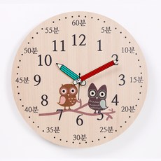 하루아홈 가지부엉이 교육용 어린이 아이 시계공부 무소음 벽시계 LW2019 + AA건전지, 혼합색상
