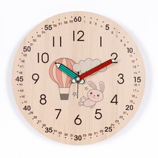 하루아홈 열기구토끼 교육용 어린이 아이 시계공부 무소음 벽시계 LW2012 + AA건전지, 혼합색상