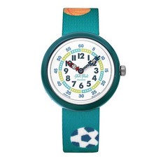 Flik Flak 어린이 생일 파티 석영 폴리 에스테르 스트랩 녹색 14 캐쥬얼 시계 (모델 : ZFPNP014)