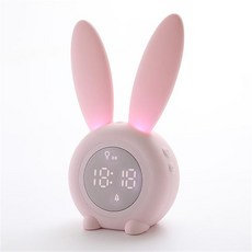 LED 토끼 캐릭터 미니 탁상시계 무소음, 핑크