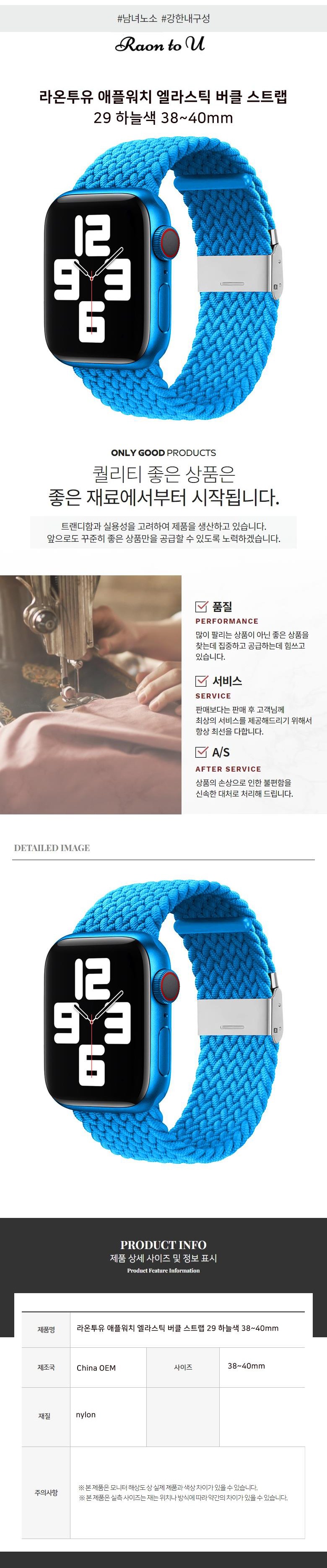 라온투유 애플워치 엘라스틱 버클 스트랩 29 하늘색 38~40mm