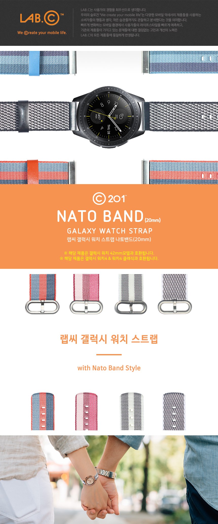 랩씨 갤럭시 워치 스트랩 나토 밴드 40/41/42mm 호환 20mm