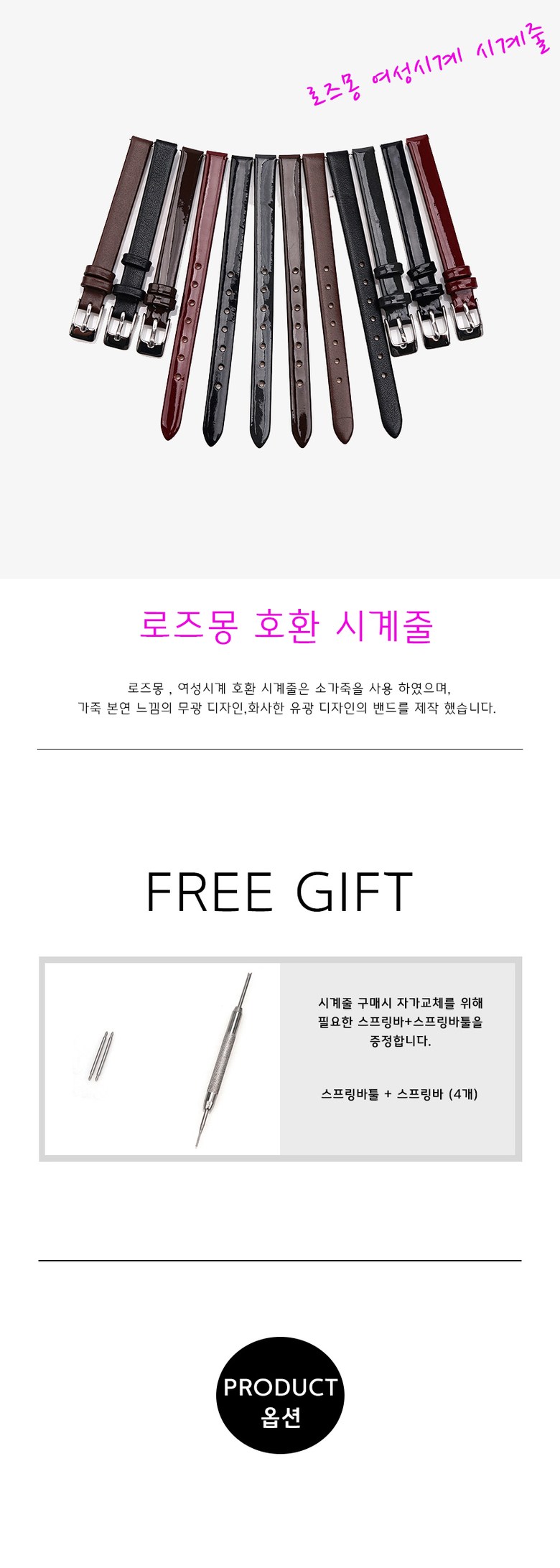 로즈몽 밀튼스텔리 여성시계 호환 민무늬 유무광 6mm 8mm 10mm 가죽시계줄