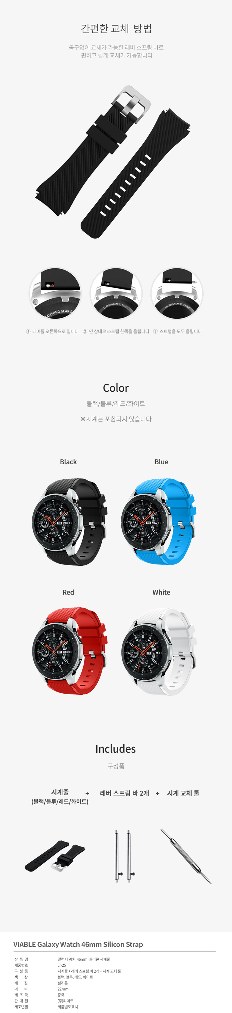 바이어블 갤럭시워치 46mm 실리콘시계줄 스포츠시계줄 시계밴드