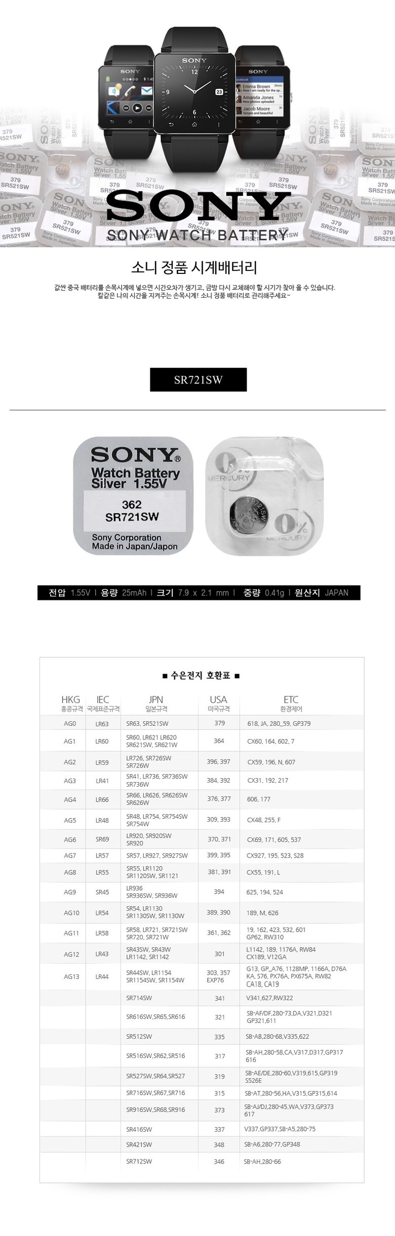 소니 SONY SR721SW 362 1.55V 25mAh 코인건전지, 1개