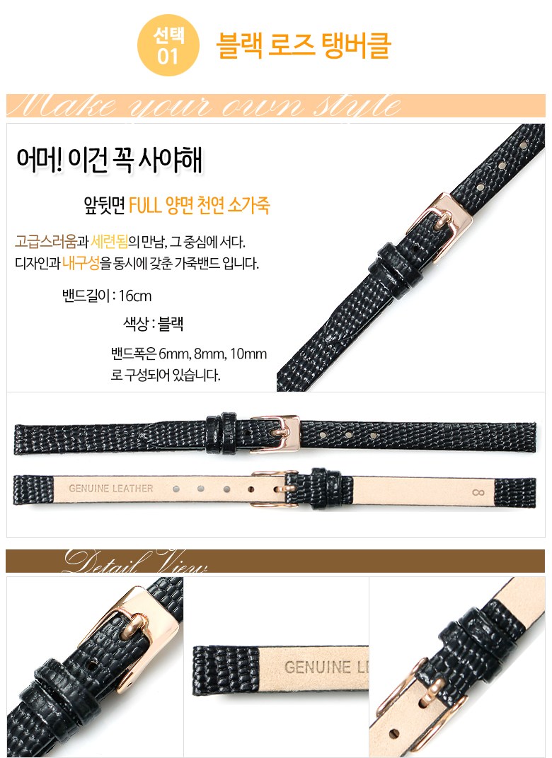 아남밴드 로즈몽 밀튼 시계줄 호환 밴드 6mm 가죽시계줄