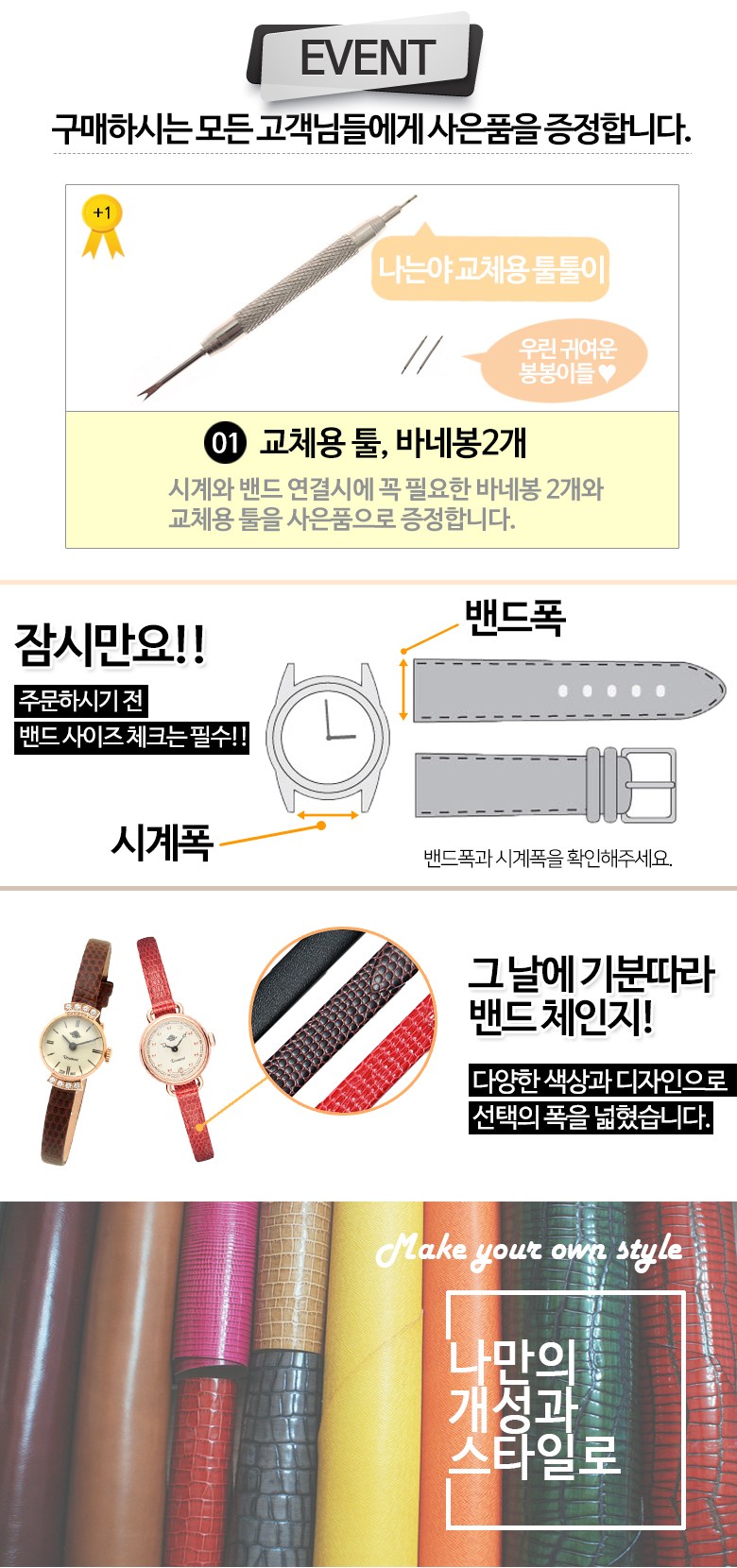 1+1 공방 가죽 시계줄 (밴드2+핀4+공구2)