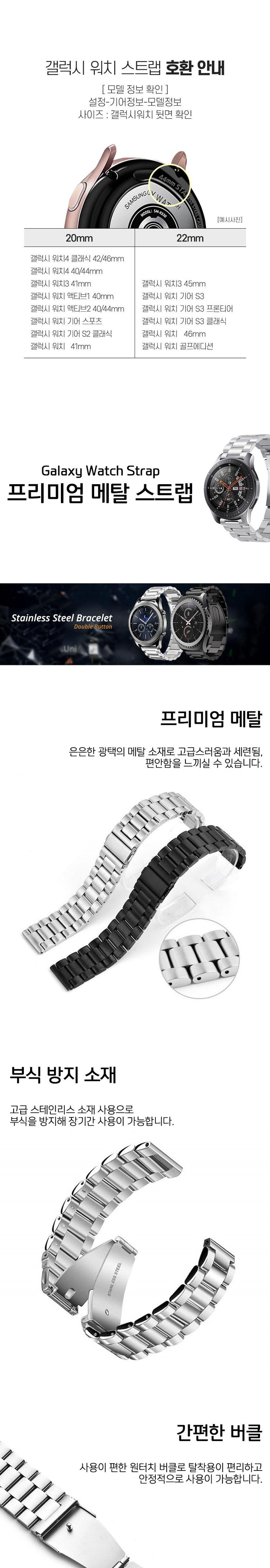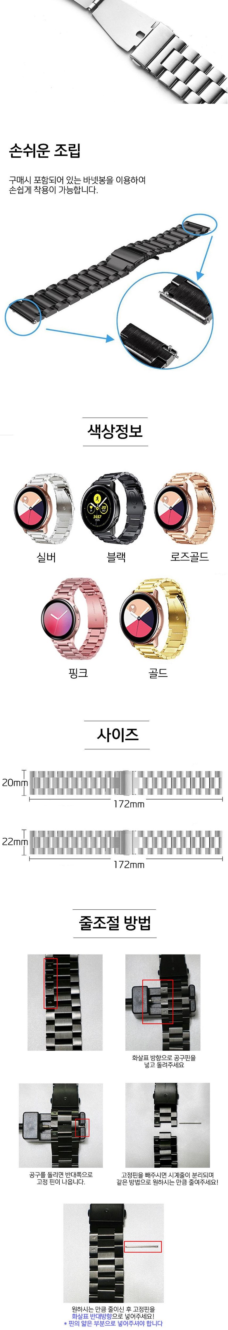 올인템 갤럭시 워치4/워치4 클래식/워치3/액티브 1/2/기어 S3 프론티어 메탈 스트랩 20mm/22mm + 공구, 핑크