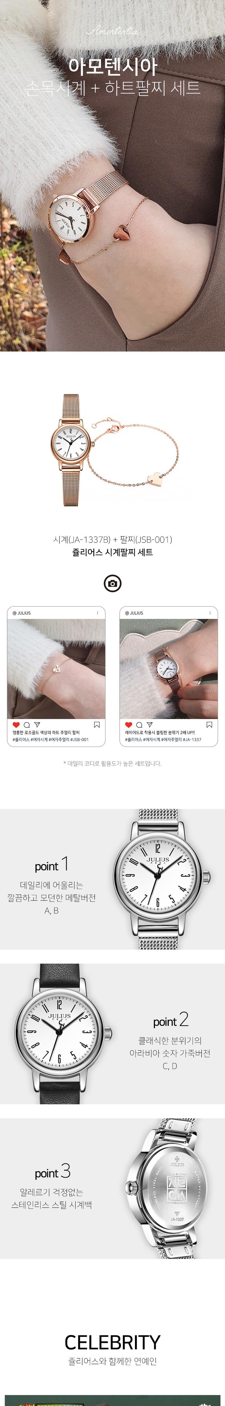 [쥴리어스] 시계+팔찌 여성시계 여성팔찌 세트 JA-1337+JSB-001