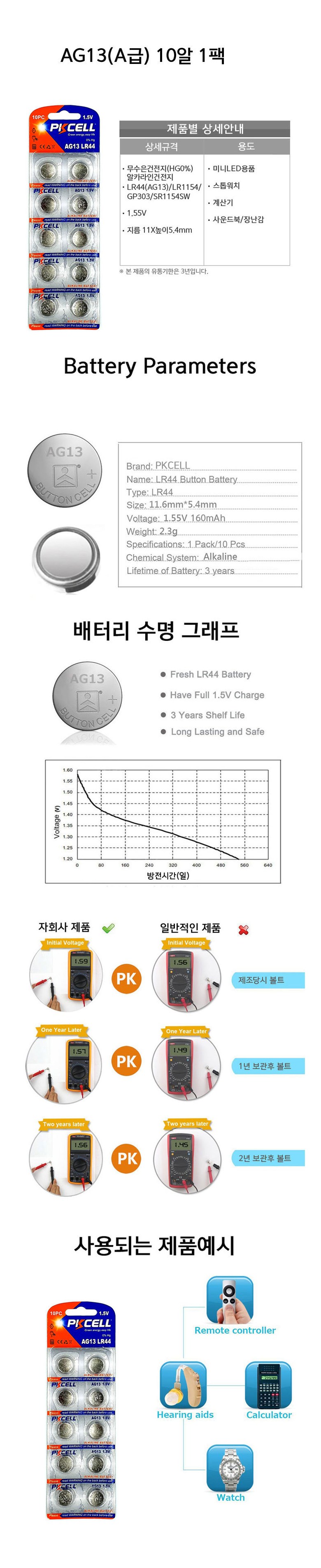 피케이셀 AG13 수은건전지 코인건전지 KC인증, 1세트, 10개입