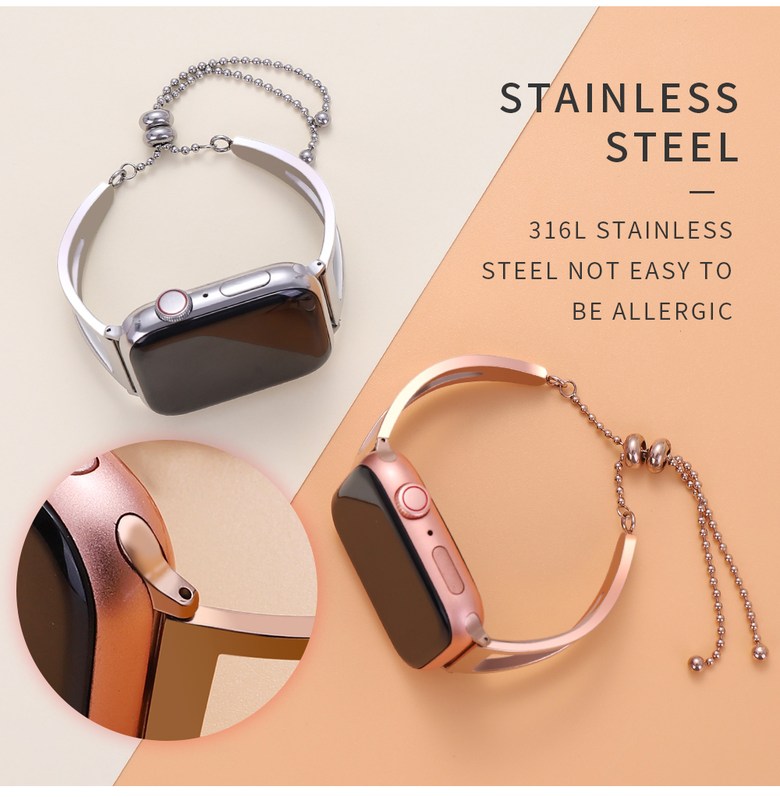 Apple Watch iWatch SE 6 5 4 3 2 1 38mm 40mm 42mm 44mm 팔찌 스트랩과 호환되는 금속 스테인레스 스틸 스트랩 여성용 스트랩 V 자형 스트랩, 실버