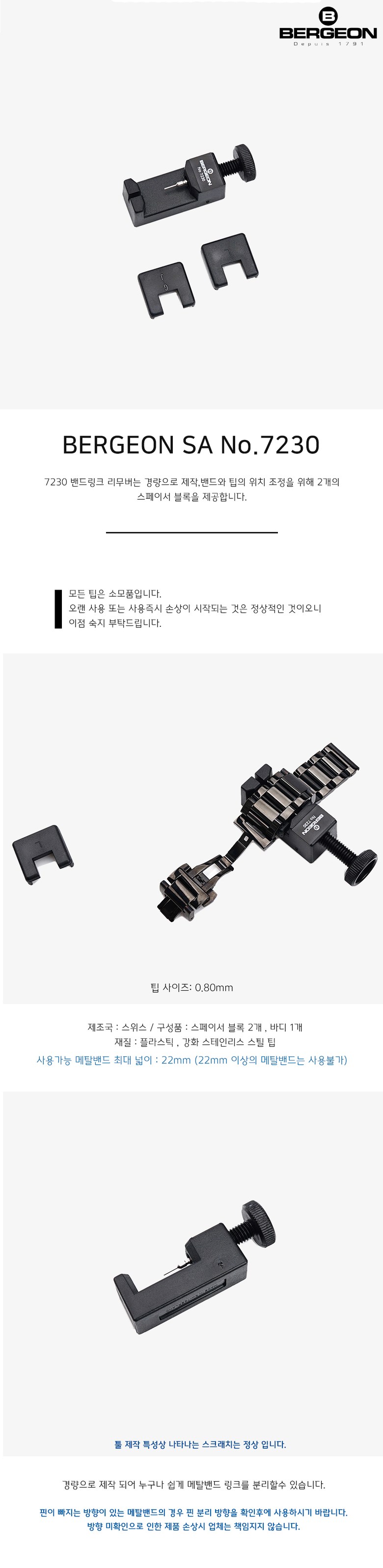 BERGEON SA No.7230 메탈밴드 링크 리무버