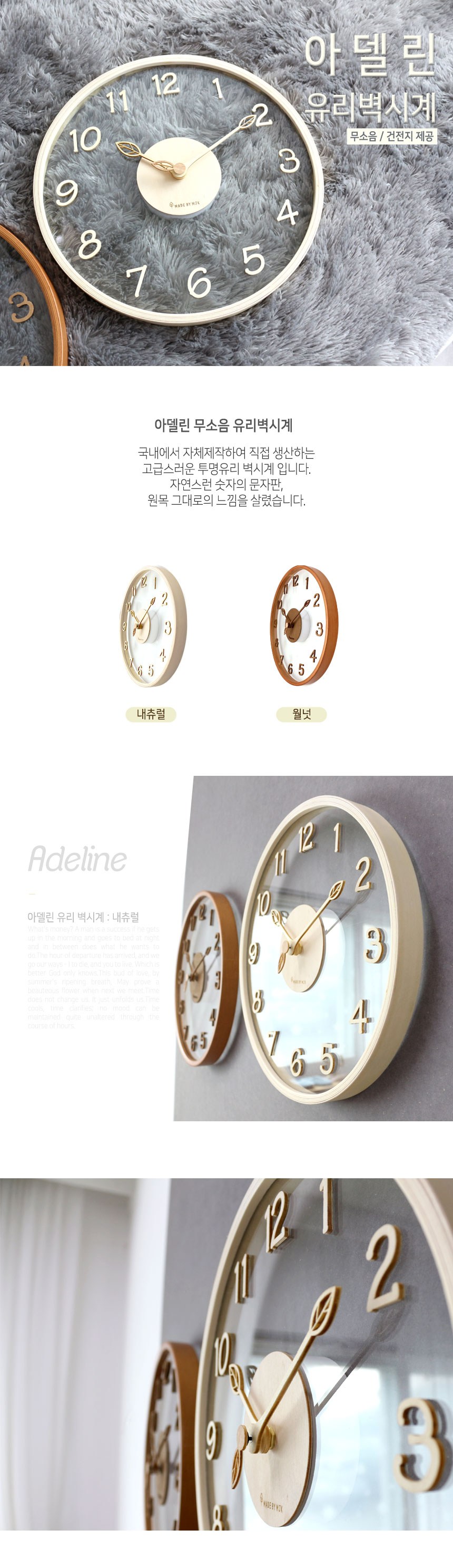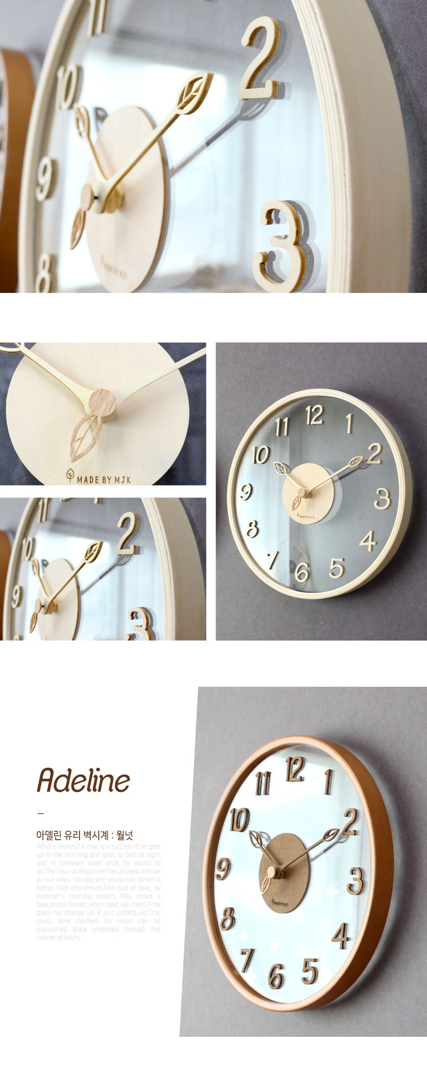 MJK 아델린 무소음 유리 벽시계, 내츄럴