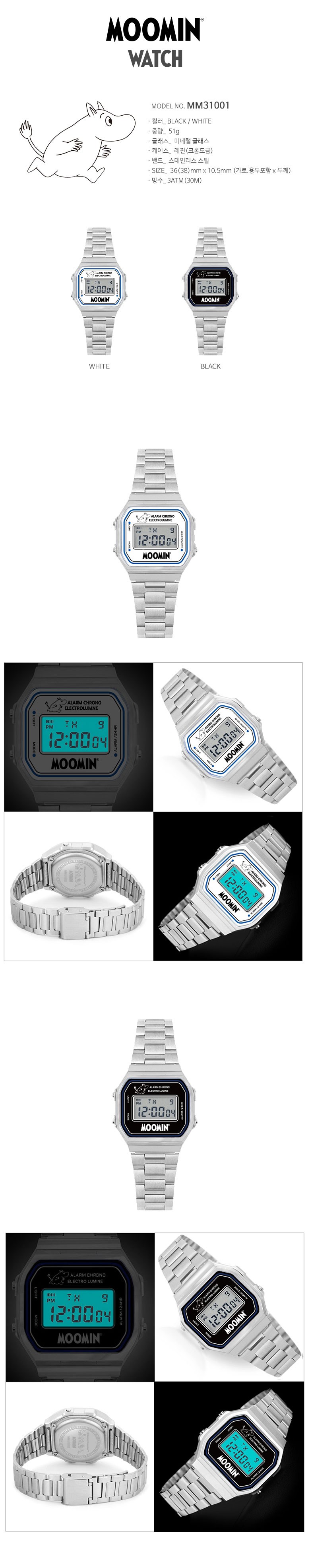 MOOMIN 무민 MM31001 남여공용 메탈밴드 전자 손목시계