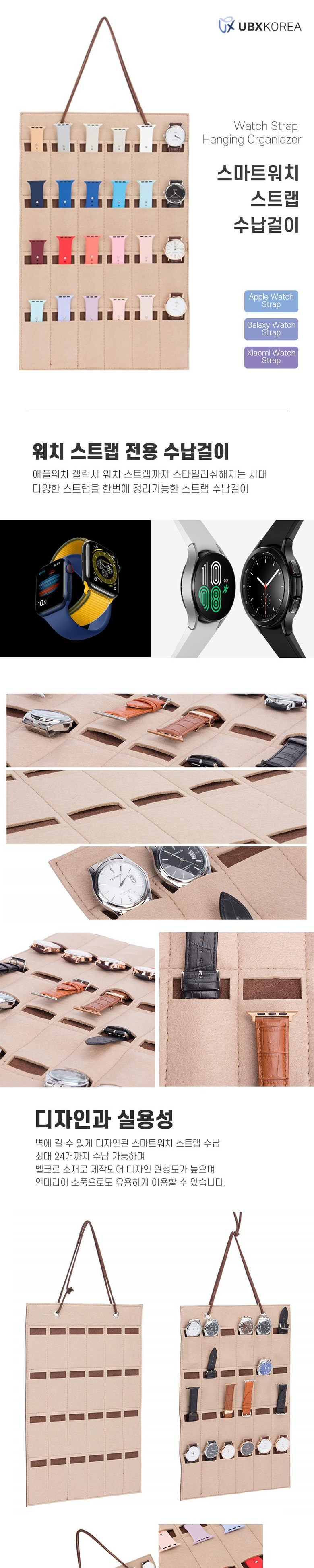 UBX 애플워치 벽걸이 스트랩 보관함 수납 걸이 밀레니즈 스포츠 루프 실리콘 밴드 갤럭시 워치 시계줄, 브라운